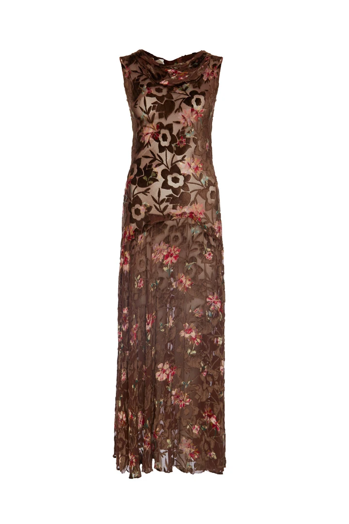 SKU: dress-6694317752438 Categories: ANNIE'S ARCHIVE, CLOTHING, Dresses Tags: Annie's Archive, Brown, Dress, Floral, Gown, Maxi dress, Velvet, Vintage