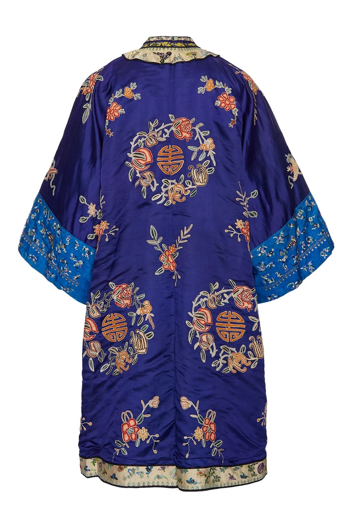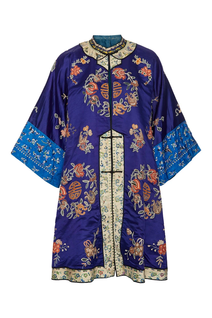 Embroidered satin woman’s chang-fu, informal robe,