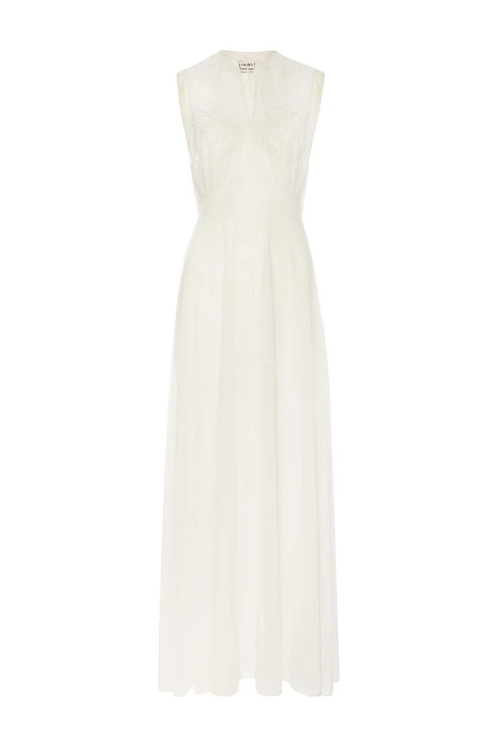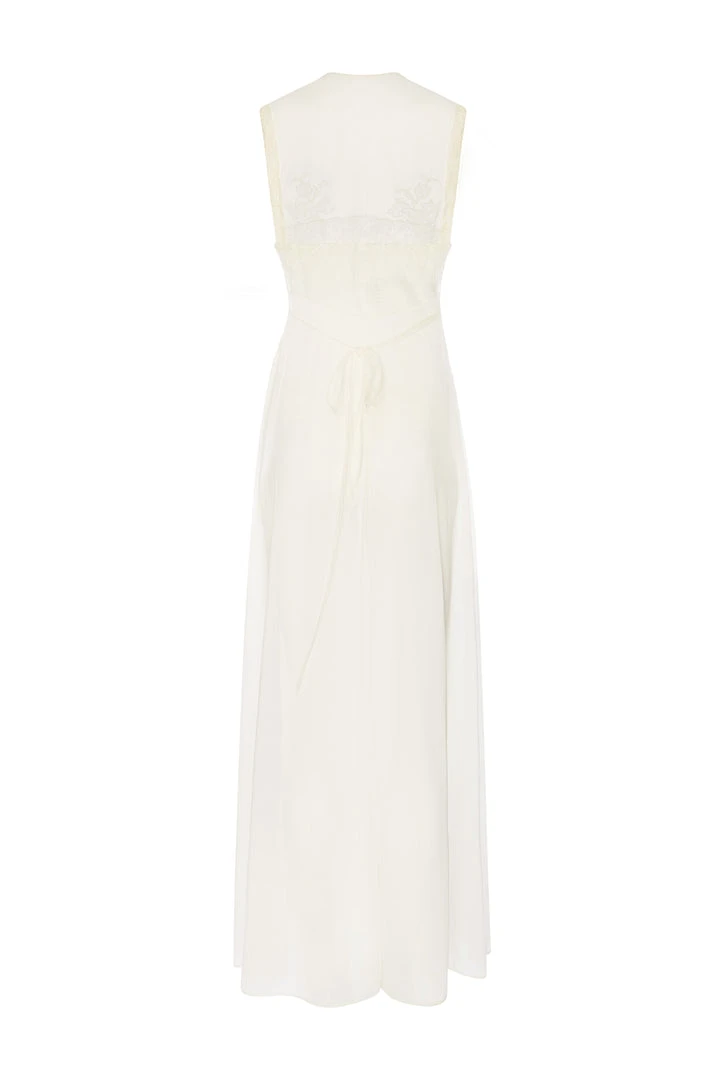 1940s vintage off white silk slip dress with lace detailing