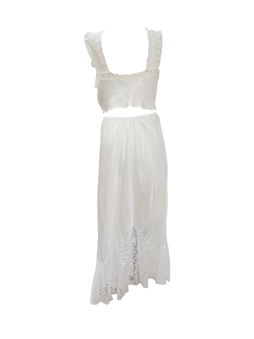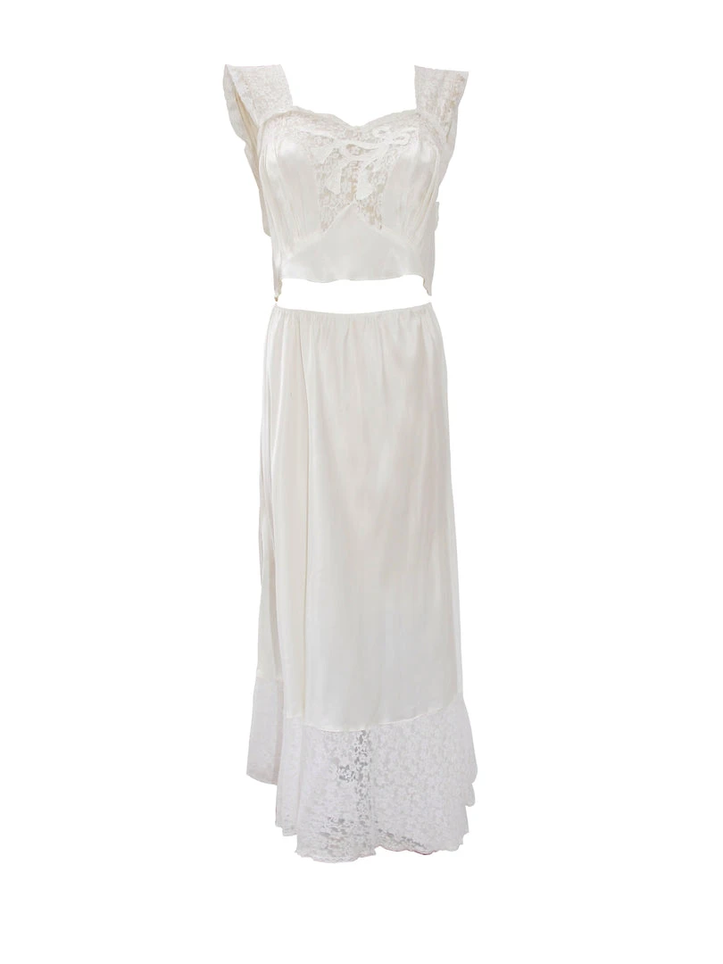 1940s two-piece white slip dress set with lace trimÂ