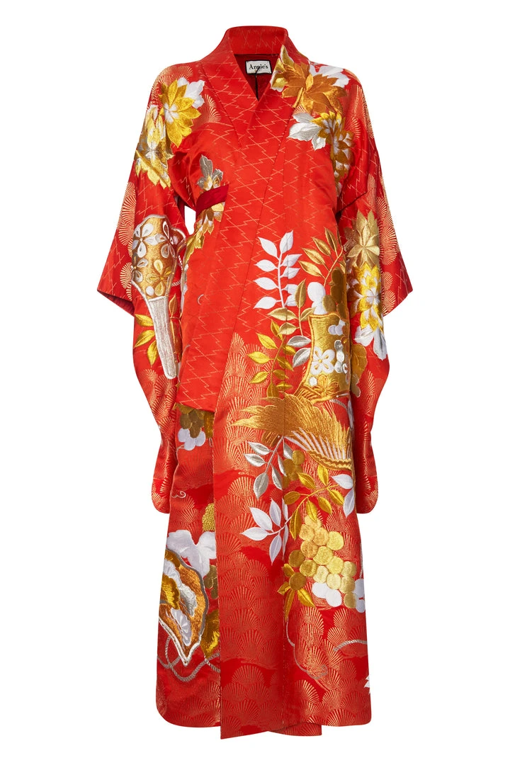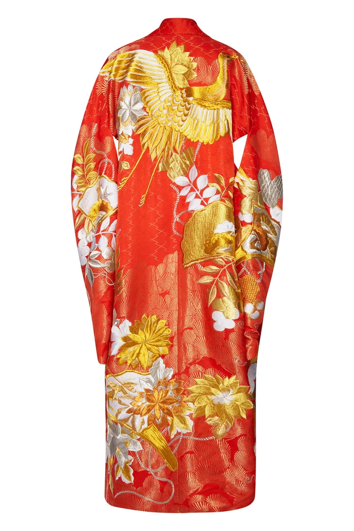 Annie’s Archive 1910 Burgundy Velvet Robe Kimono With Embroidered Cranes And Lily Pads