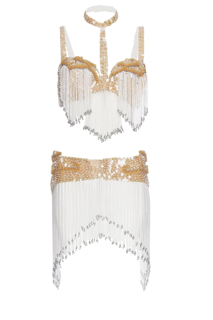 Annie’s Archive 1980s Beige Showgirl Sequin Embroidered Two-Piece. Rent: £47/Day