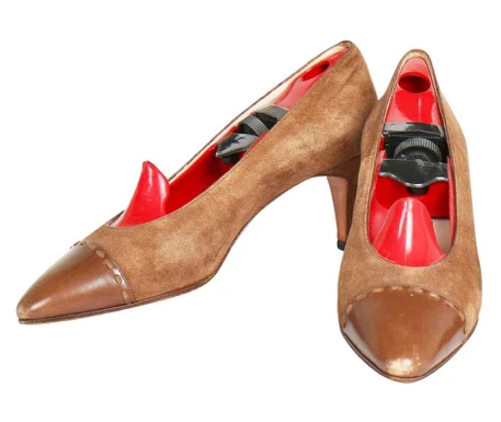 Rare 1980s Chanel signature two-tone suede and smooth leather pumps; exposed stitching detailing; 1.5 inch heel; very good condition; signs of wear on sole