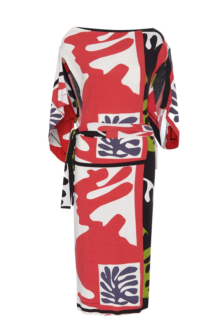 Early 2000s Westwood. Daytime cotton draped dress; sleeveless; pillow-case style cut ensemble; belt tie; over the knee length
