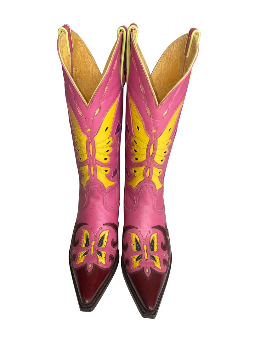 These 90s inspired pink butterfly style is perfect for someone who loves a girly cowboy boot!