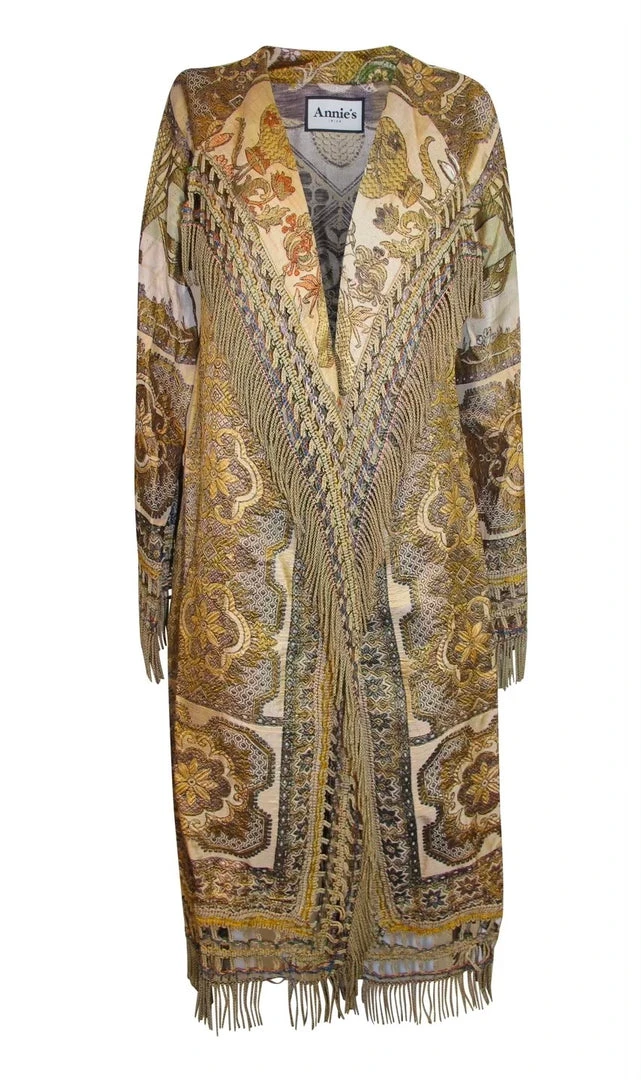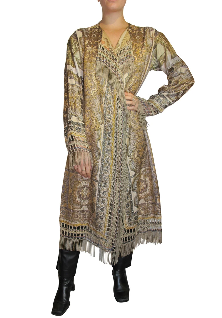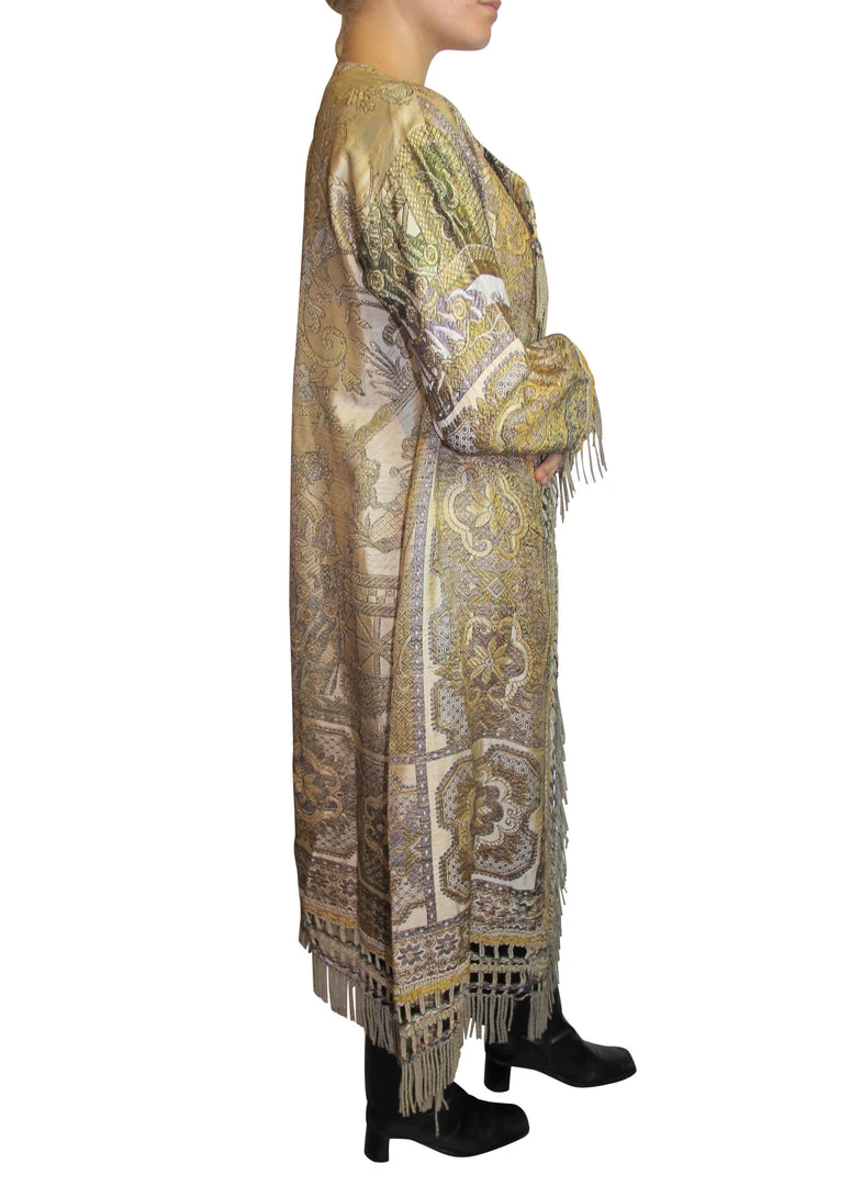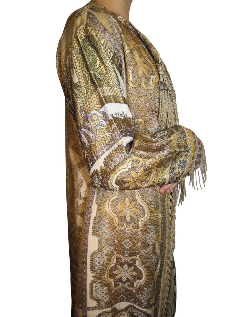 This fabulous one-of-a-kind piece handmade coat is made handmade embroidered silkÂ