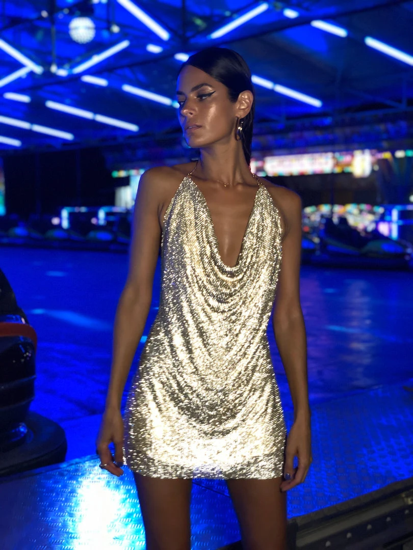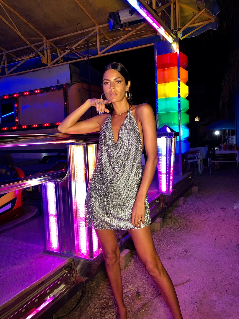 Annie’s Archive 1994 Spring-Summer Moschino Cocktail Sequin “Peace” Sign Dress. Rent: £135/Day