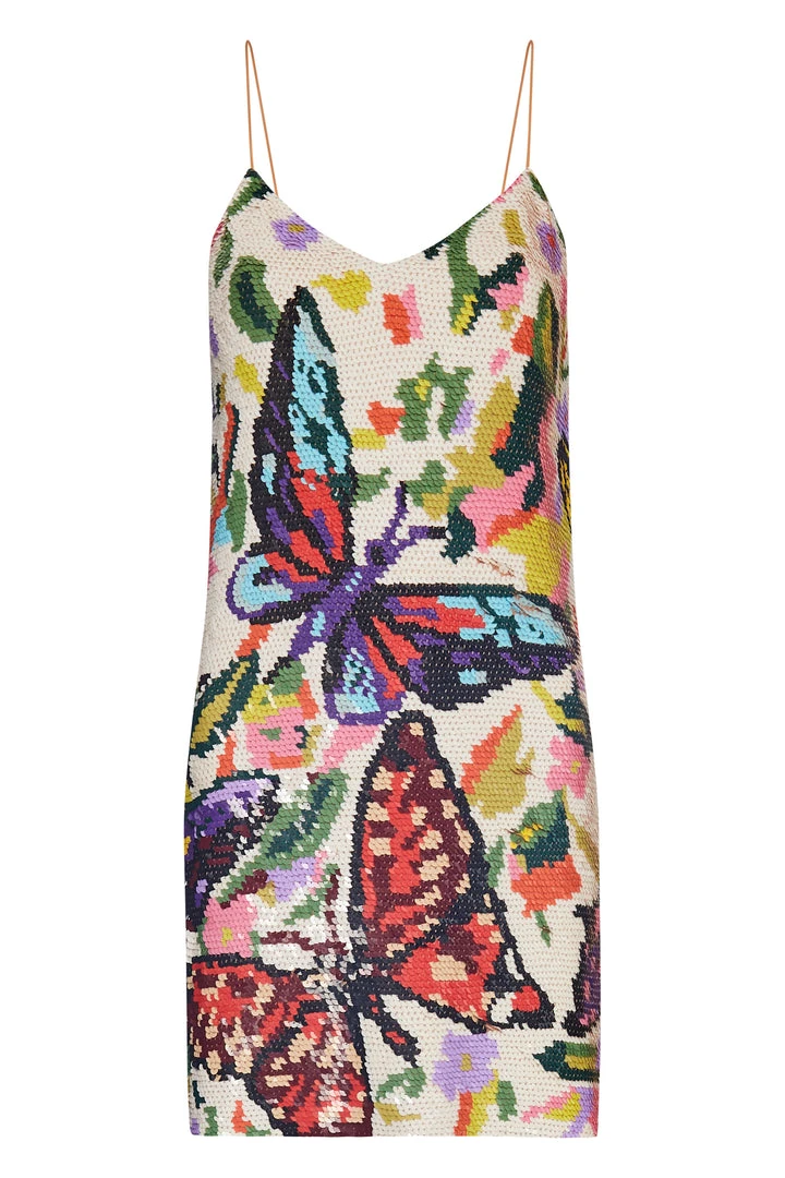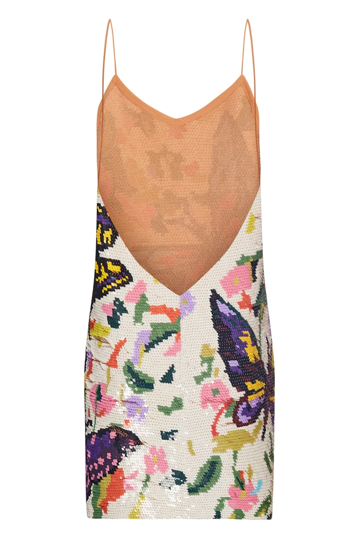 This dress captures the designer’s exquisite craftsmanship as well as his new season mantra; designing clothes to spread joy. It’s made in India from sequinned, embroidered by master artisans, with slender beaded shoulder straps, a V-neck and a concealed side zip.