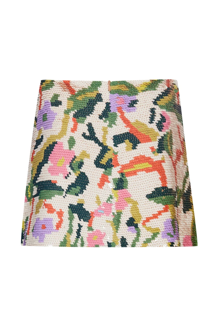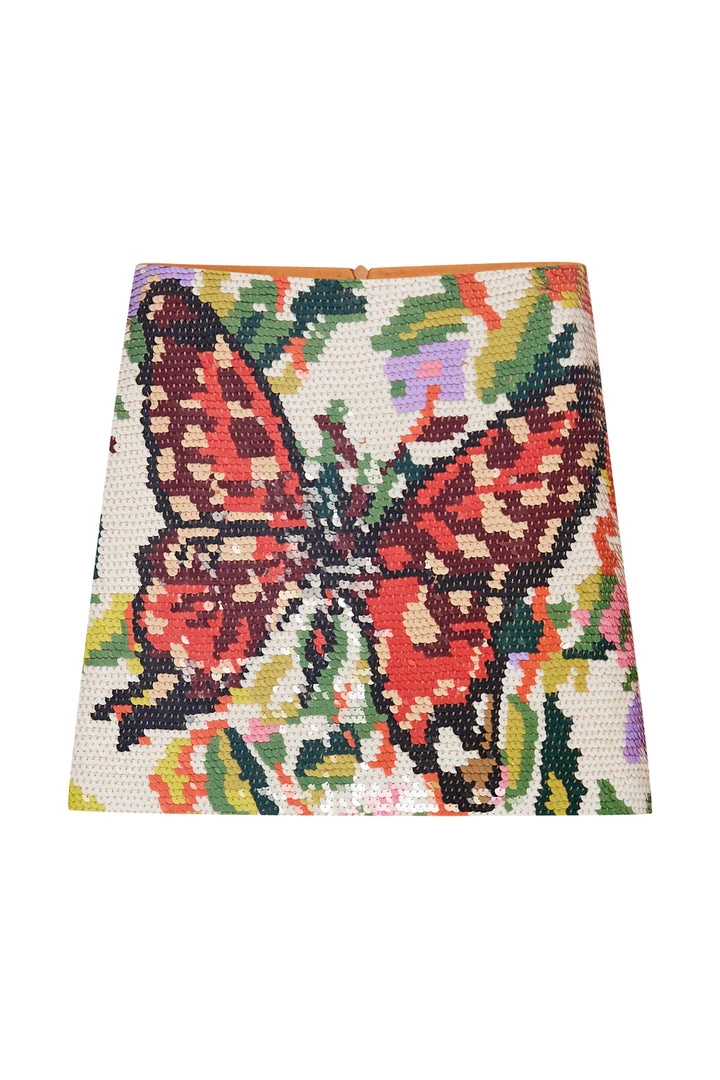 Multicolor cotton butterfly sequin-embellished mini skirt from ASHISH featuring all-over butterfly embroidery, sequin embellishment.Â