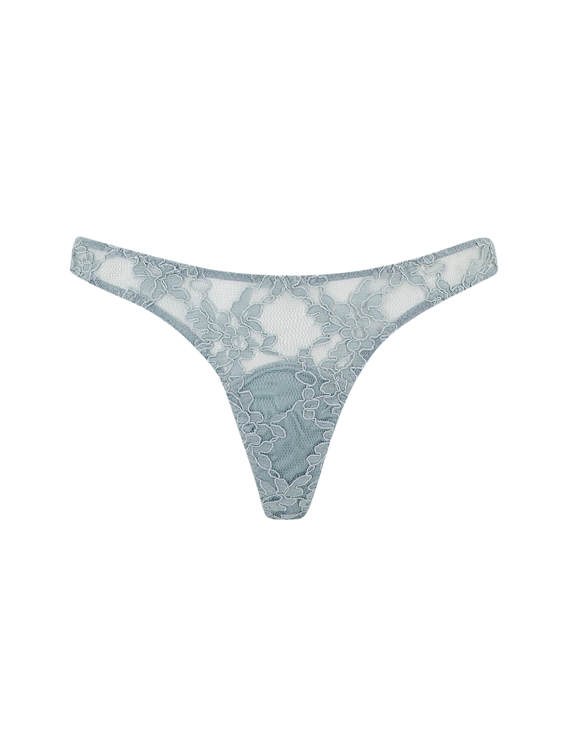 Equal parts sweet and seductive, the Viola Thong offers classic appeal with charming detail. Sky blue lace creates brief coverage to the front and an irresistibly bare silhouette to the rear. An endearing satin bow provides an adorable finishing detail to the derriere, for addictive sensuality.