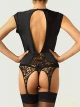 Black on black lace and silk marry to create unmatched sophistication and sensuality in this piece. Botanical French lace forms the front of the knicker, providing teasingly sheer coverage. The band and straps taper around the hip for graphic and contouring appeal, meeting at a small panel of eyelash lace to the reverse. Â
