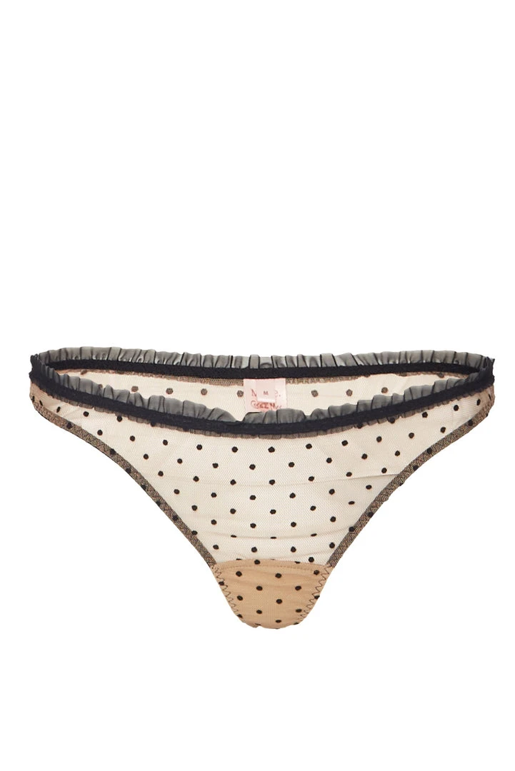 Meet the Simone Thong the seductive sheer polka dot thong. Normal rise.