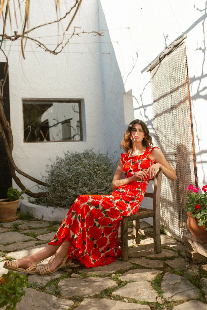Introducing The Bandana Prink Rose Dress, this versatile piece is one of a kind – understated yet vivacious and striking. Adorned with this seasons luxe pink rose Satin Viscose fabric and finished with a square neckline and fluid hemline. This ankle length style lets the fabric do the talking – a day dress with wearability at its core.Â