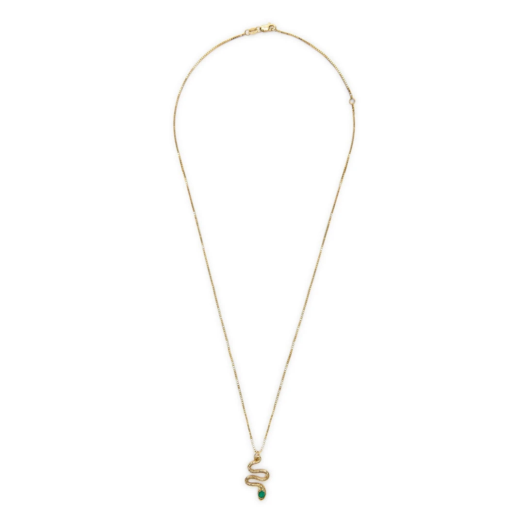 14K Solid Yellow Gold snake pendant with a Diamond eye.