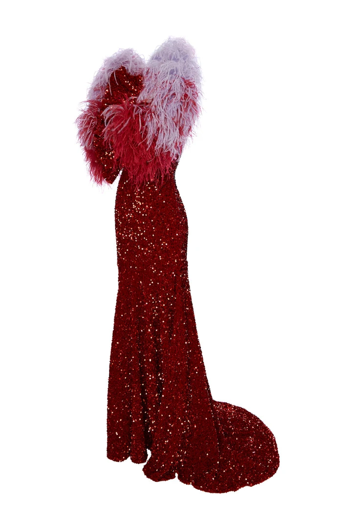 Beautifully hand made sequin feather dress by Kevin Germanier