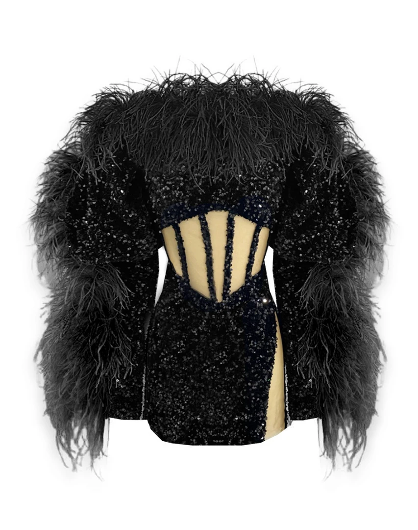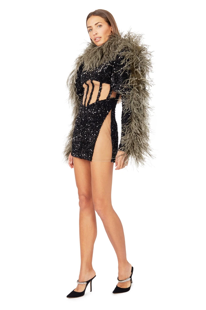 Beautifully hand made sequin feather dress by Kevin Germanier