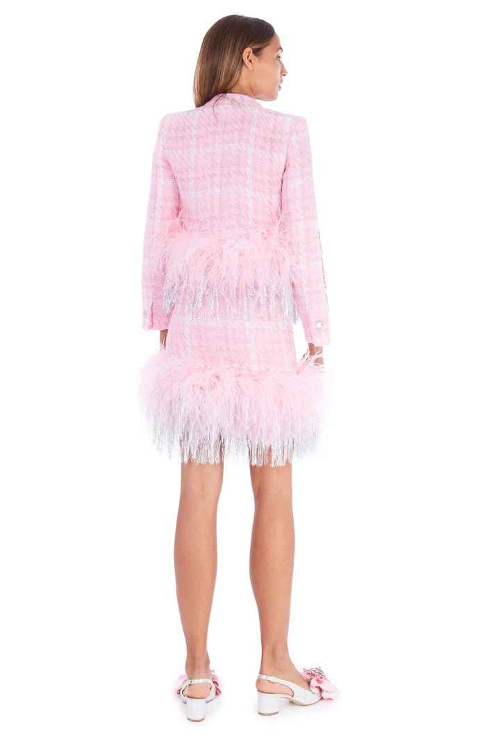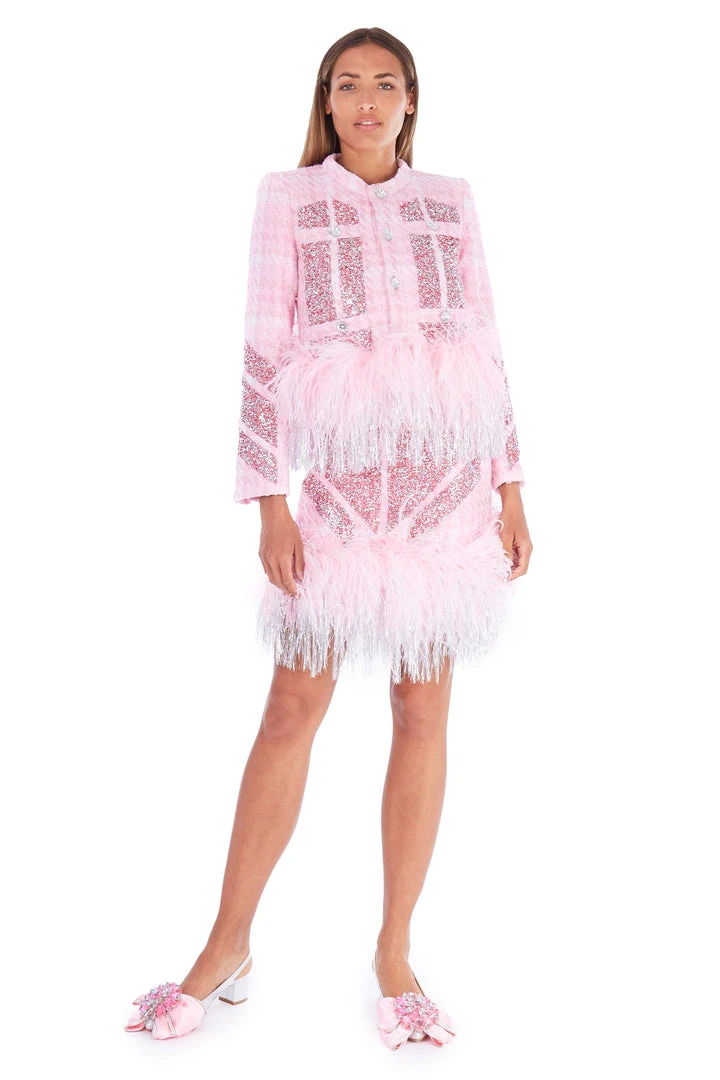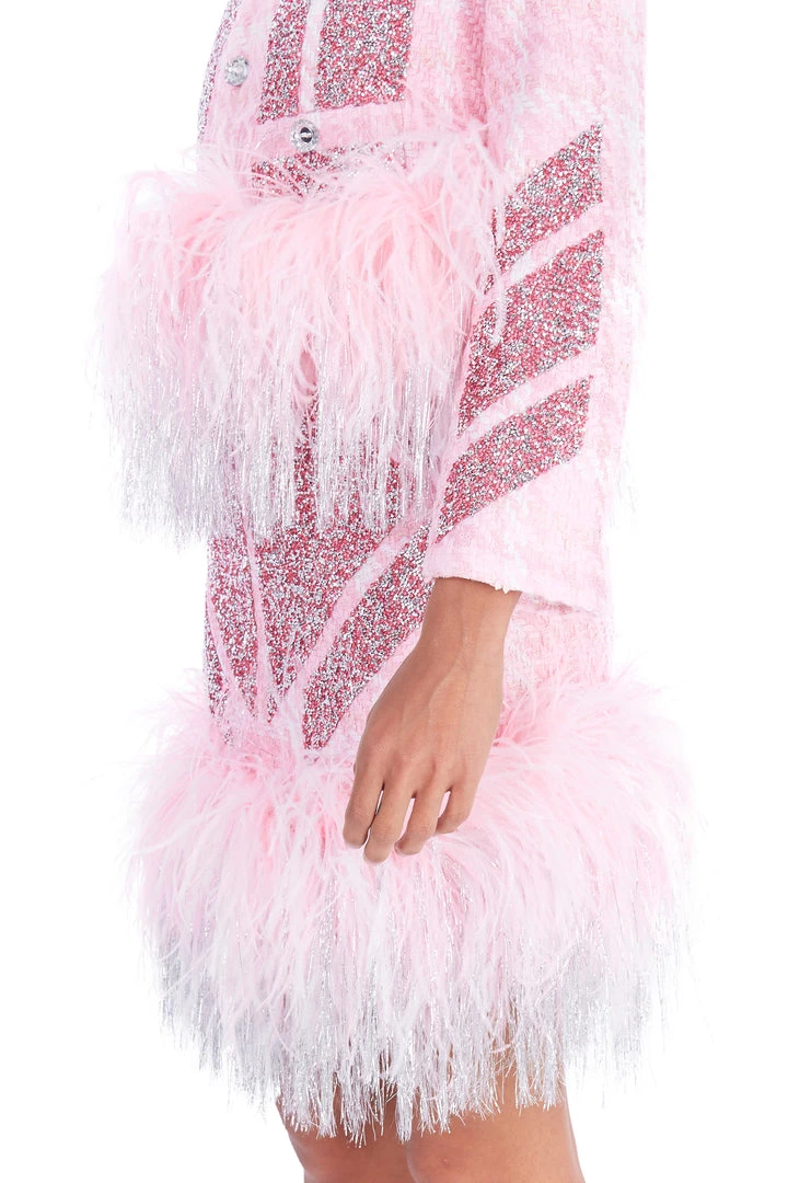 Beautifully hand made knit jacket with adorned with feathers by Kevin Germanier handmade by his own grandmother!