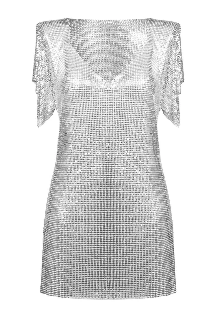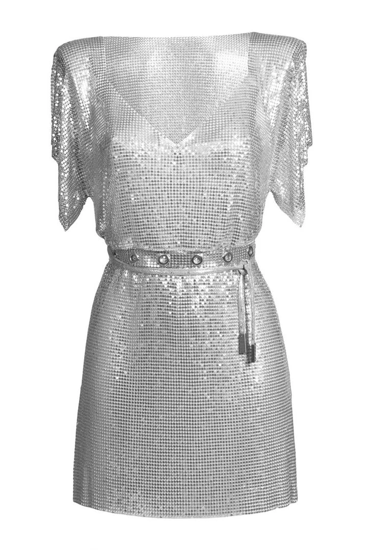 Iconic T-shirt style metal dress handwoven from metal mesh fabric in our Ibiza workshop, belt included.