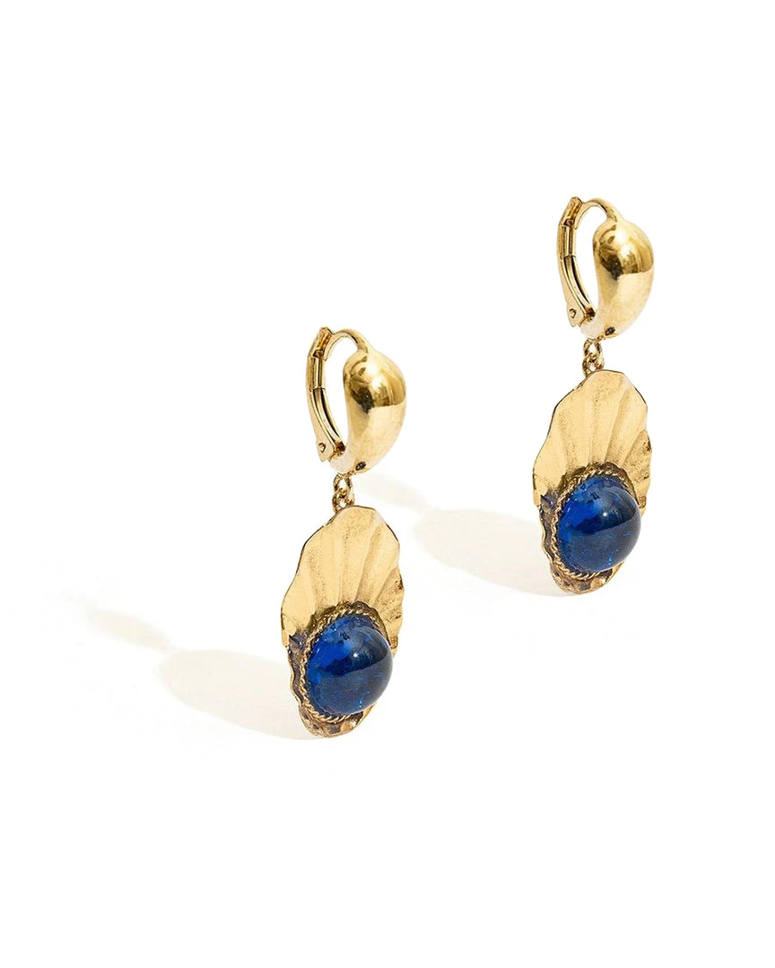 CONCH SHELL INSPIRED EARRINGS WITH BLUE ZIRCONS IN ECO-SILVER AND 18 KT GOLD PLATED.