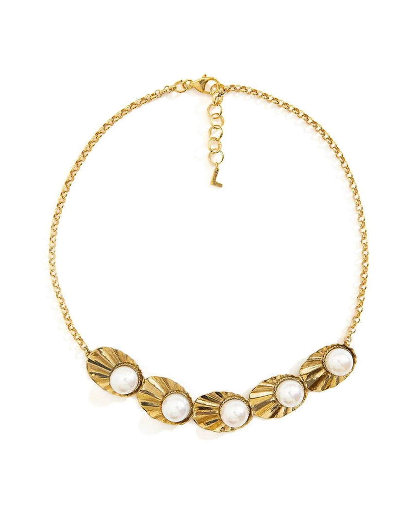 CONCH SHELL INSPIRED NECKLACE WITH NATURAL PEARLS IN ECO-SILVER AND 18 KT GOLD PLATED.