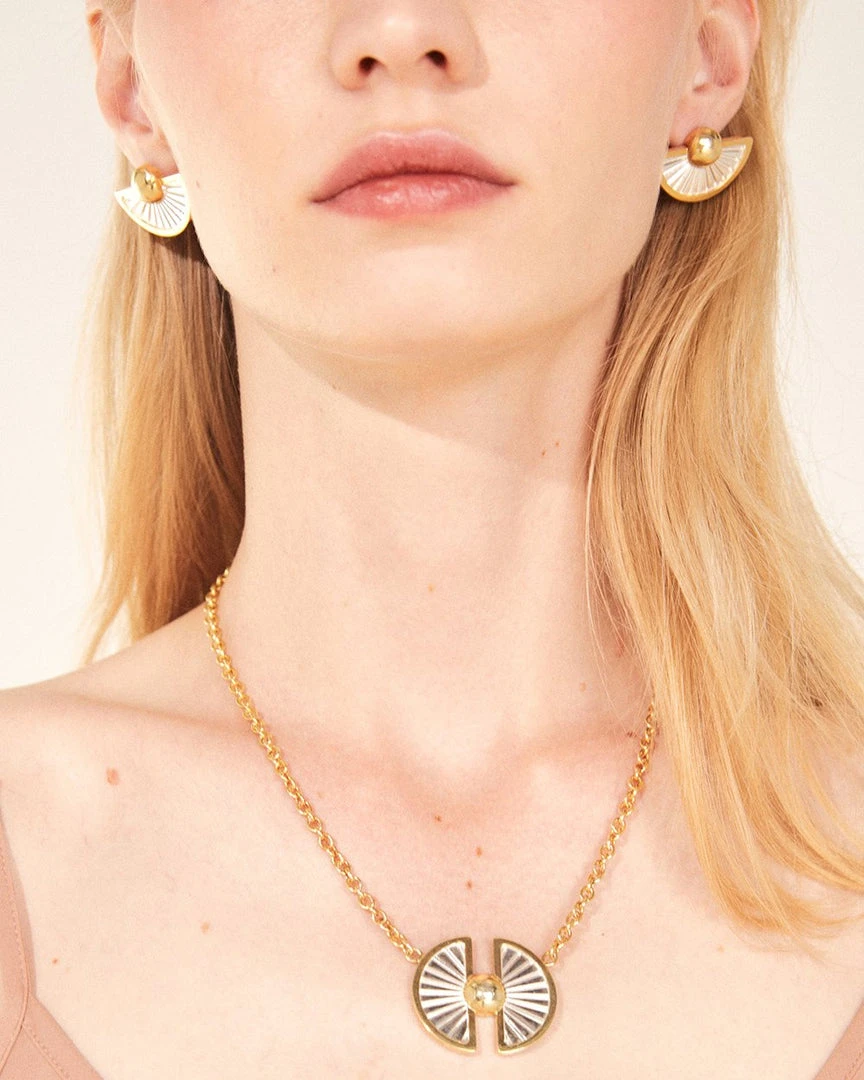 HALF MOON CONCH SHELL INSPIRED NECKLACE IN ECO-SILVER AND 18 KT GOLD