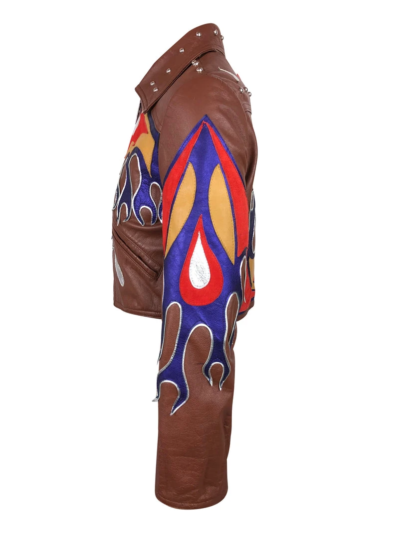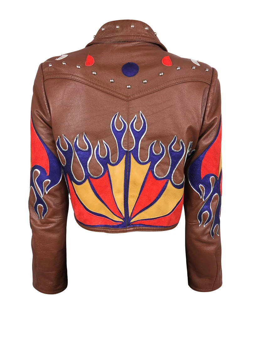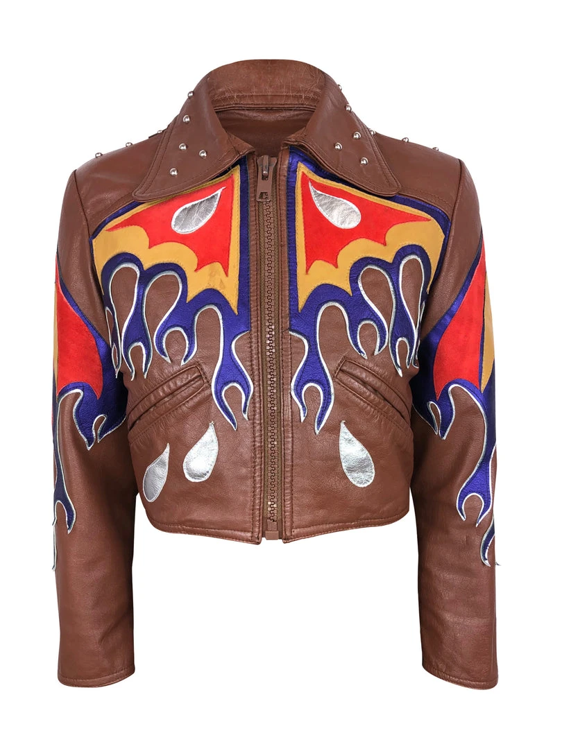 Stunning remodelled vintage jacket with up cycled leather detailing.Â