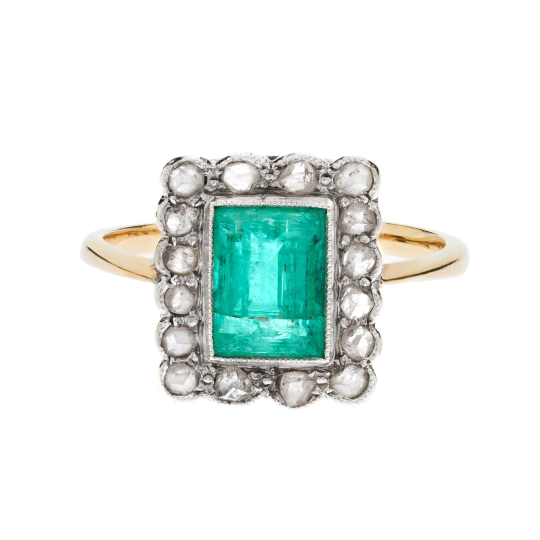 18ct yellow gold band – Emerald & Rose cut Diamond on