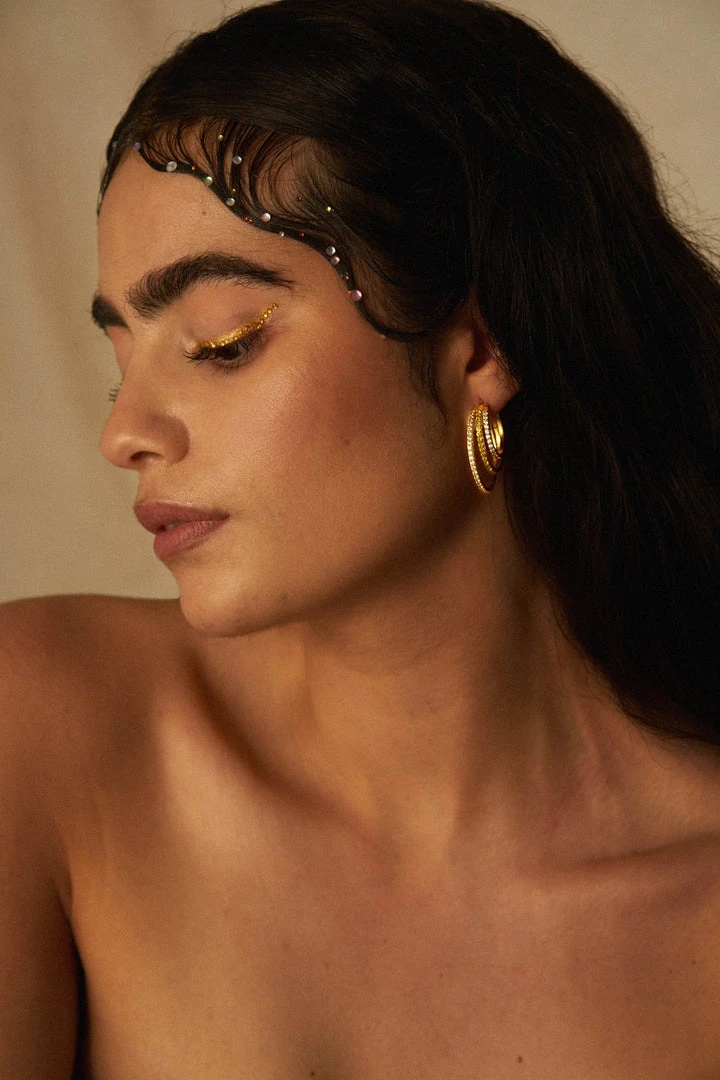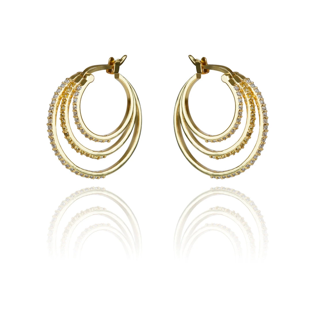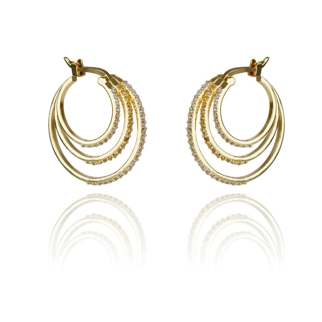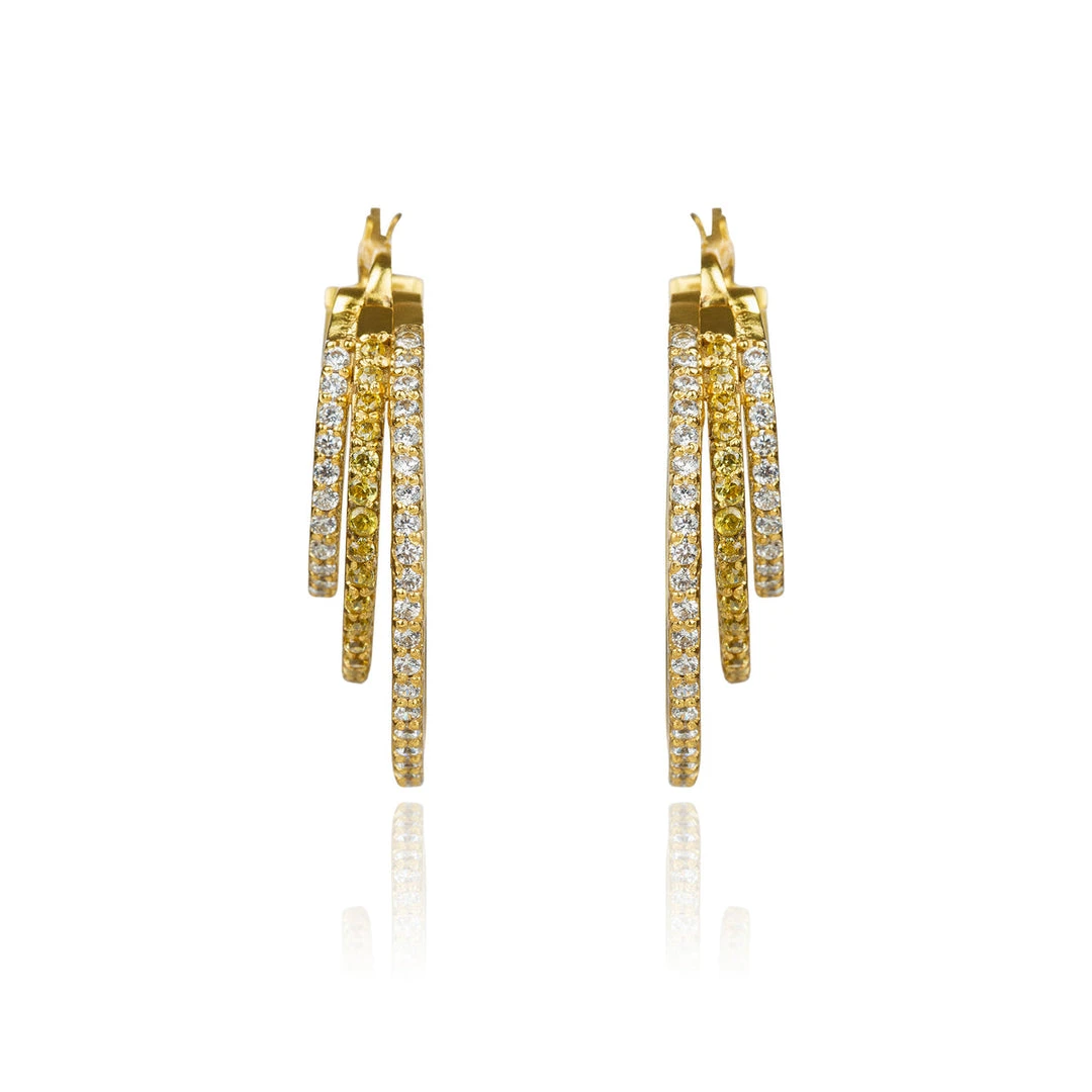 Every day staple triple hoop earrings embellished with white and citrine cubic Zirconia stones. Add an extra bit of bling to your daily wardrobe and shine!