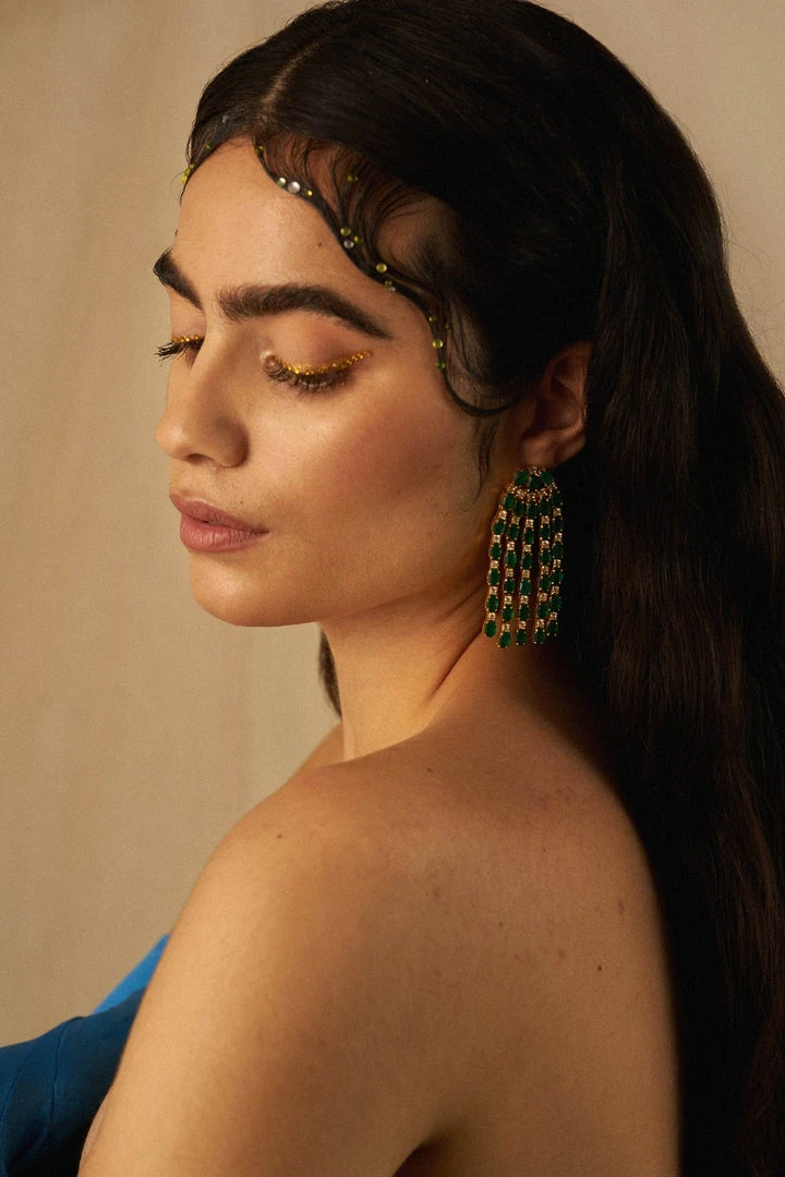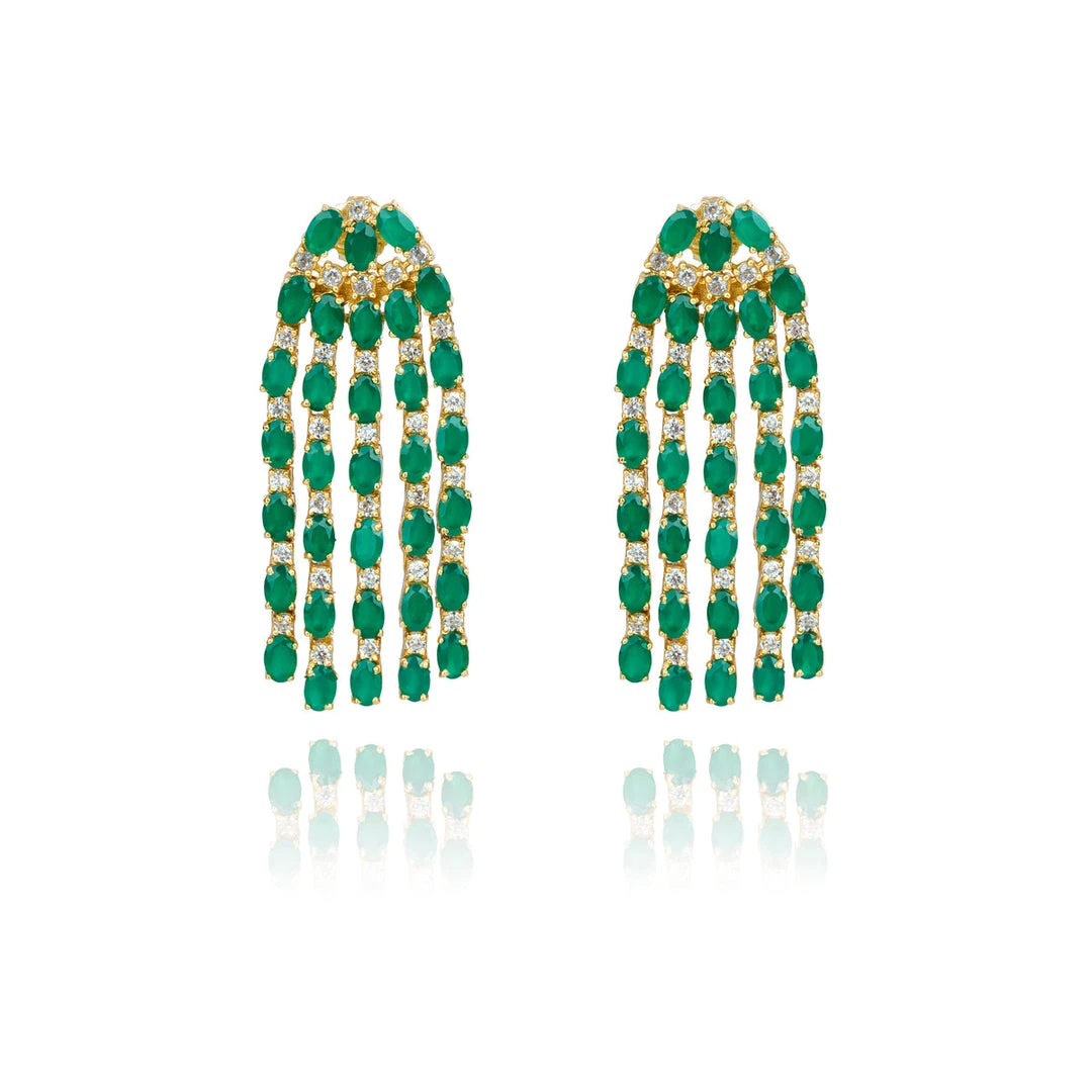Cascading waterfall earrings with green Onyx and cubic Zirconia stones. Perfect for going out and dazzling. A shiny must-have piece that will impress!
