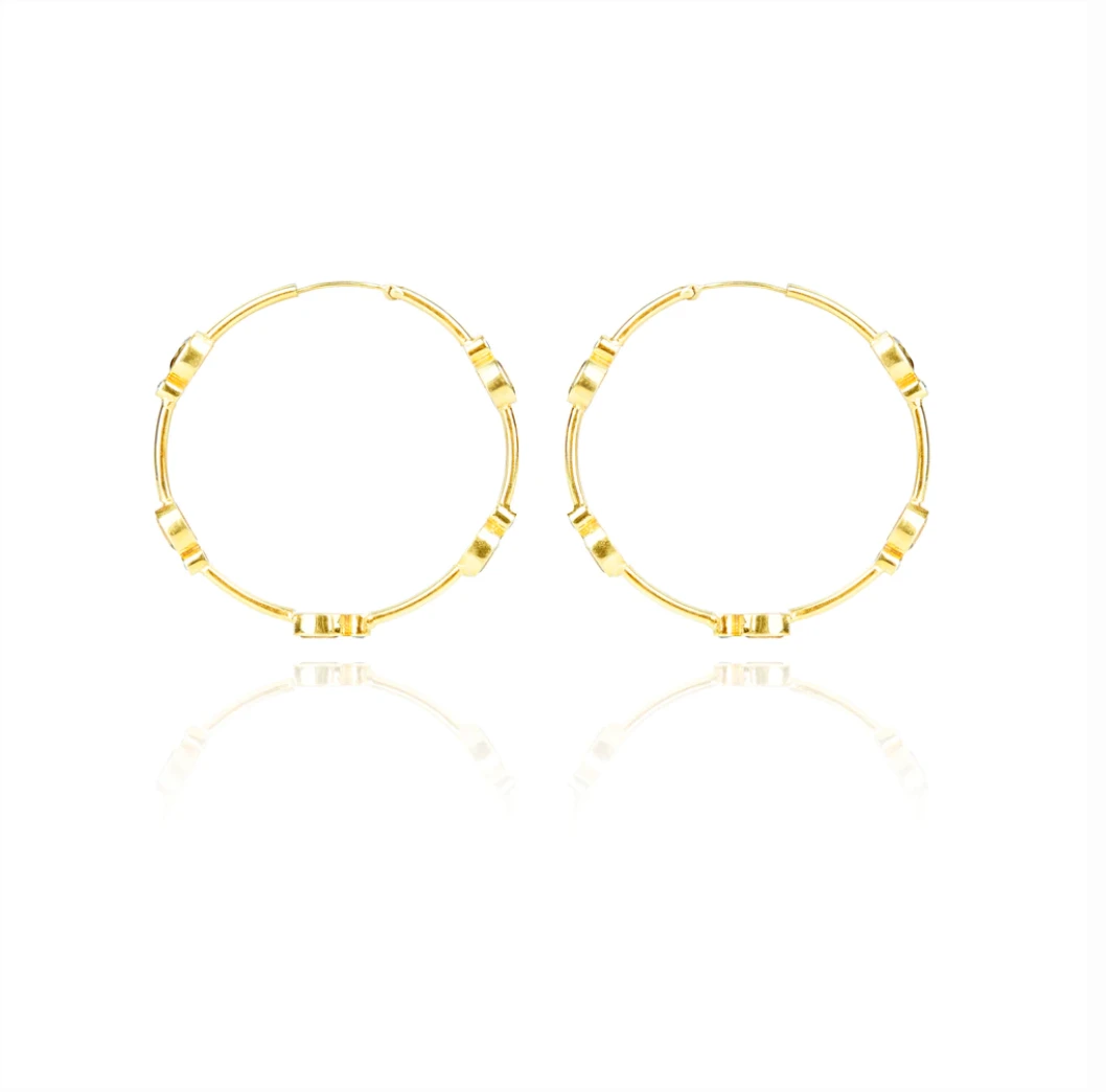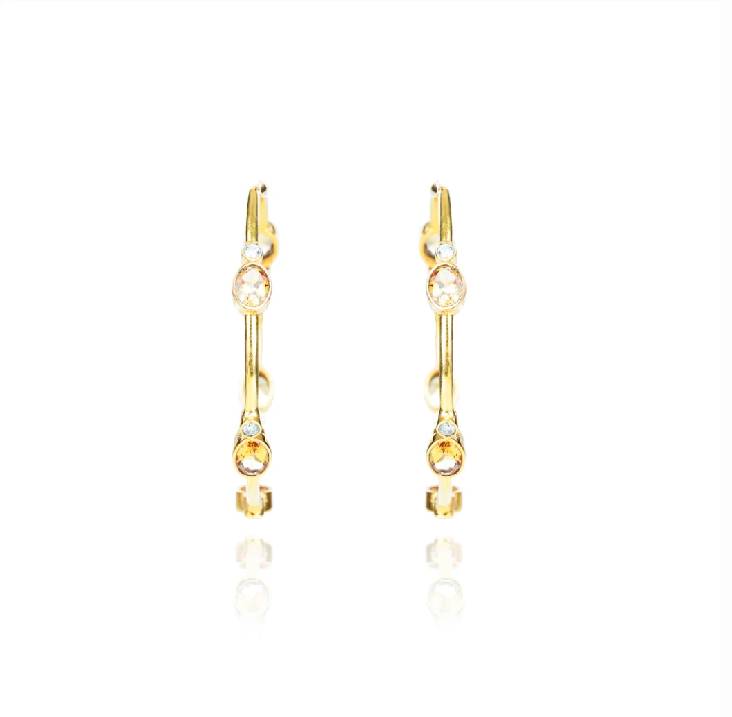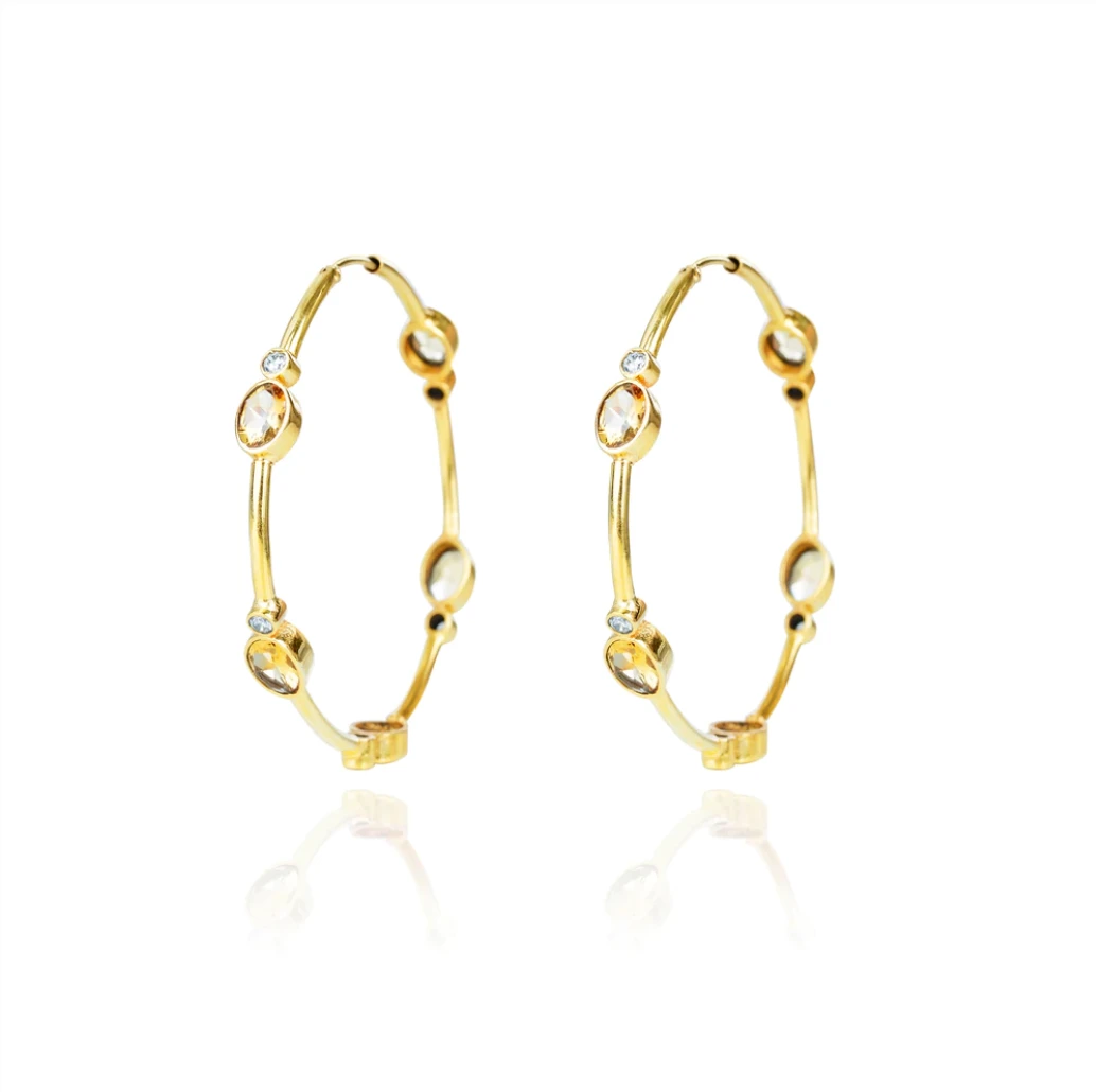 Lightweight gold piped statement hoops with large Citrine stones and Cubic Zirconia details.