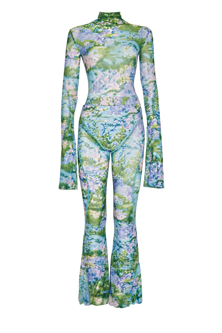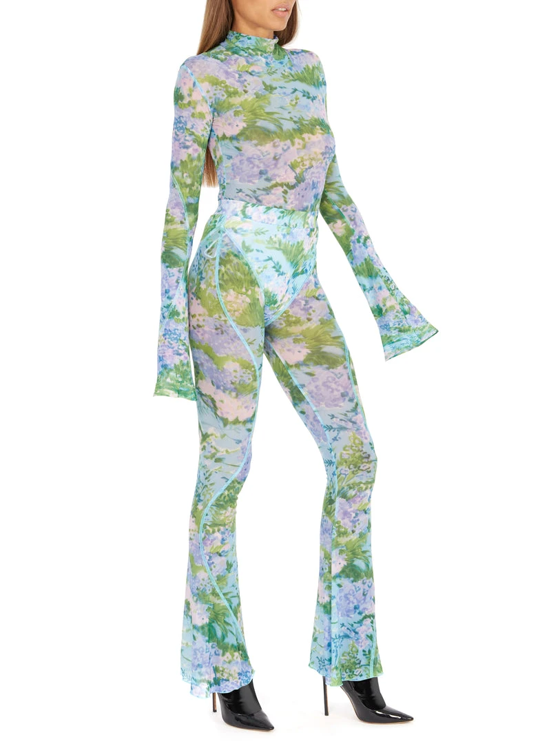 Richard Quinn Monet Mesh Flared Sleeves Bodysuit