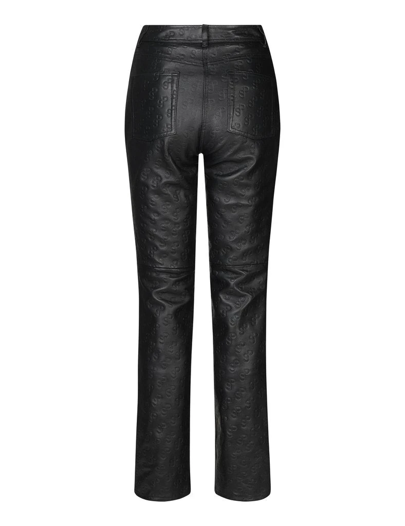 BLACK LEATHERÂ PANTS WITH SP LOGO EMBOSSMENT
