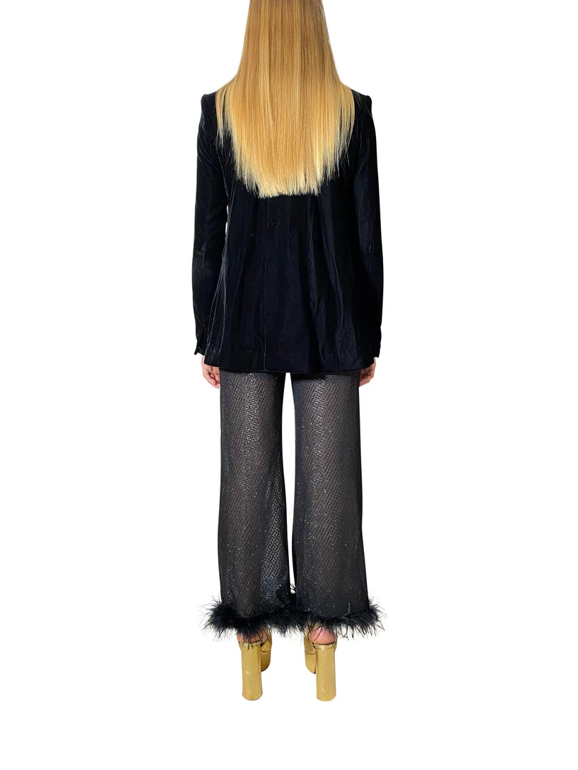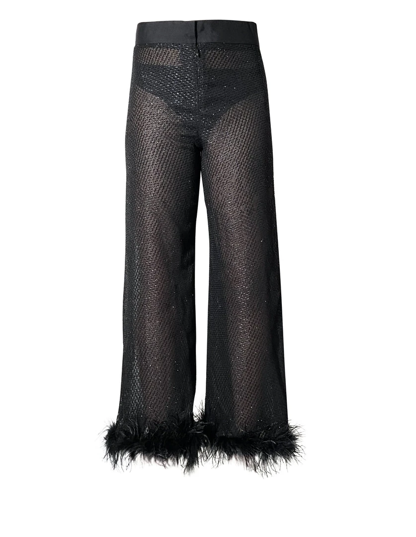 Silk Mix trousers, with marabou fur trim, pockets at the front and the back.