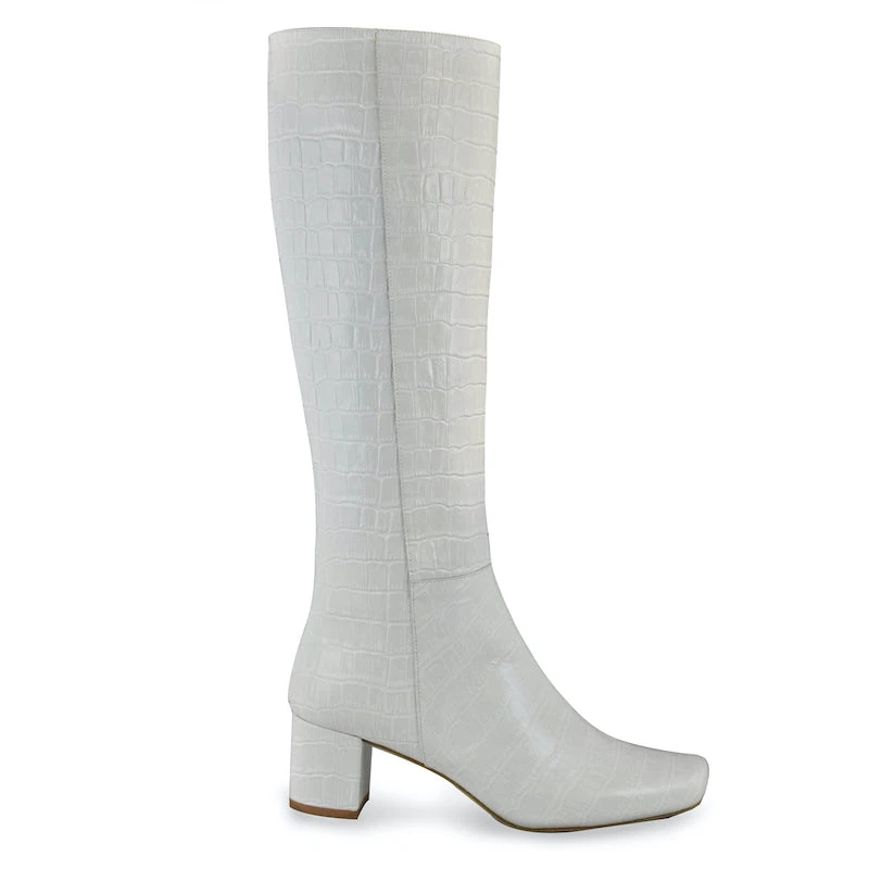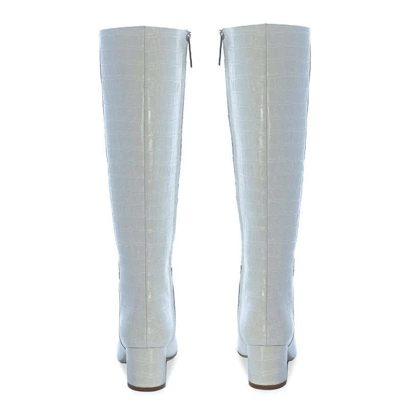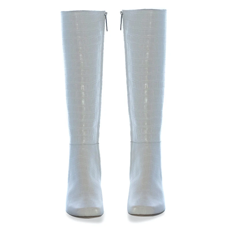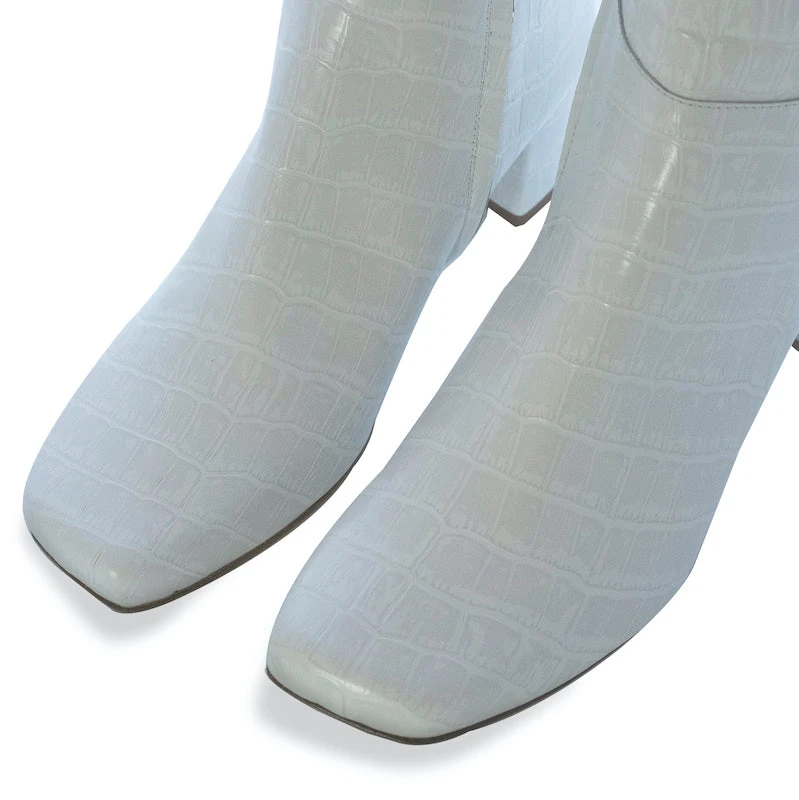 - Â Croc effect white leather